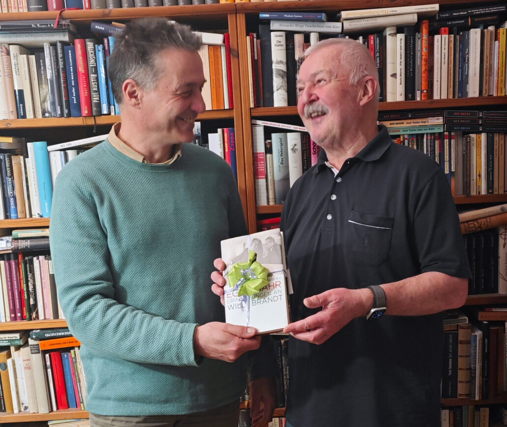 SPD-Sprecher Marcel Enzweiler bedankte sich bei Ludwig Meier für dessen Engagement in den vergangenen 24 Jahren. Ludwig Meier gehörte dem Gemeinderat seit 2002 ununterbrochen an: „Ludwig, du warst nicht nur das Gesicht der SPD in unserem Rathaus, sondern hast dich um unsere Gemeinde ganz unabhängig von der Partei über viele Jahre verdient gemacht.“ Als kleines Dankeschön haben ihm seine Genossinnen und Freunde ein von Egon Bahr signiertes Buch mit Erinnerungen an Willy Brandt überreicht.